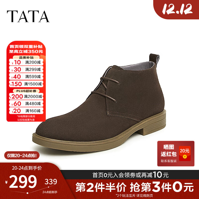 旗舰店他她(TATA)男士靴耐磨舒适复古时尚沙漠靴加绒皮翻毛男靴休闲皮鞋VVX03DD2 啡(绒里) 41