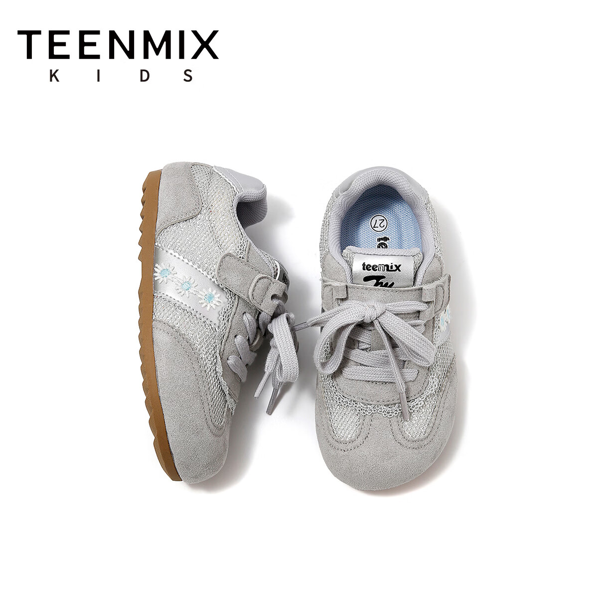 旗舰店天美意童鞋2025秋季新款女童百搭简约亲子中大童女孩雏菊复古德训 灰色 37
