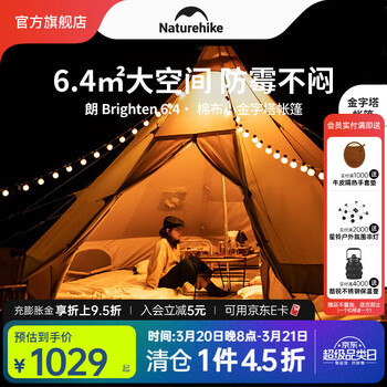旗舰店Naturehike挪客朗6.4棉布小金字塔帐篷 户外露营装备公园休闲家庭大空间 流沙金/不含地布