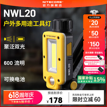 旗舰店奈特科尔NWL20户外多用途600流明工具灯聚泛双光源磁吸维修工作露营灯 NWL20标配【含电池】