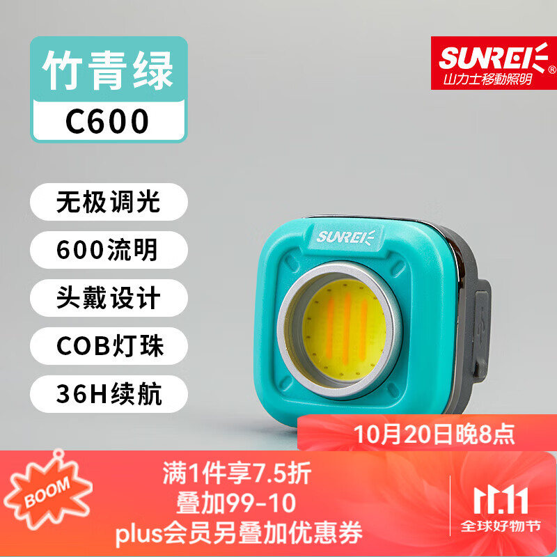 旗舰店山力士C600多功能随身灯迷你露营高亮小便携汽修灯投光灯泛光灯 竹青绿+透气织带