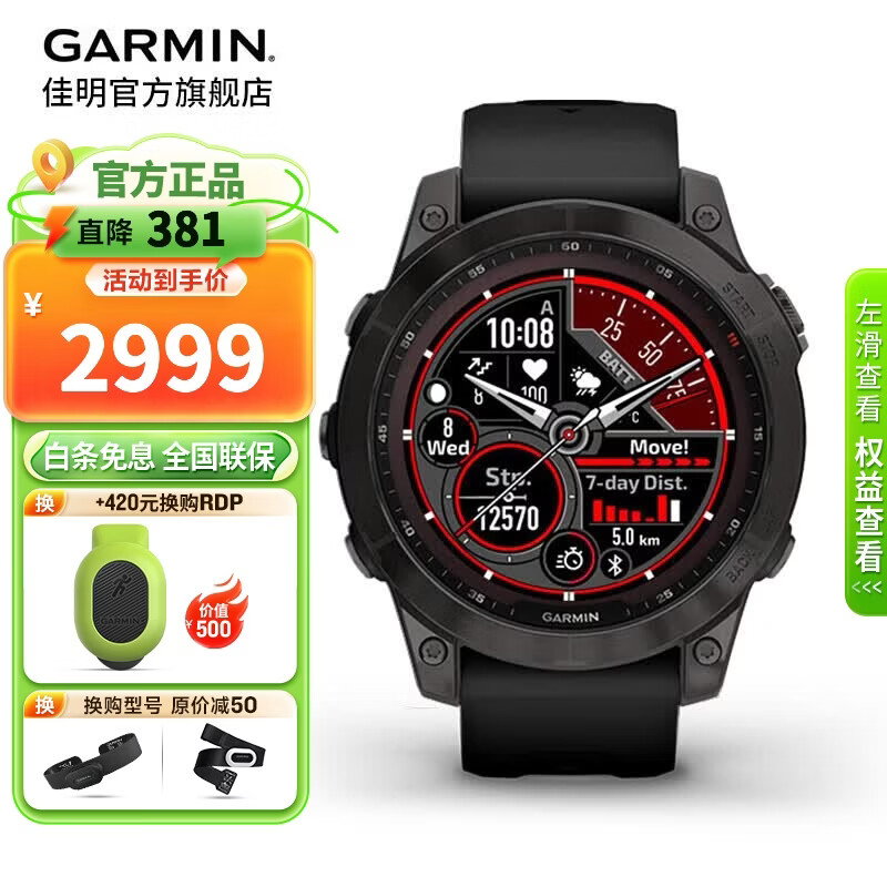 旗舰店佳明(GARMIN)Fenix7飞耐时7户外运动智能手表血氧心率登山滑雪游泳跑步男友 F7DLC碳黑旗舰版