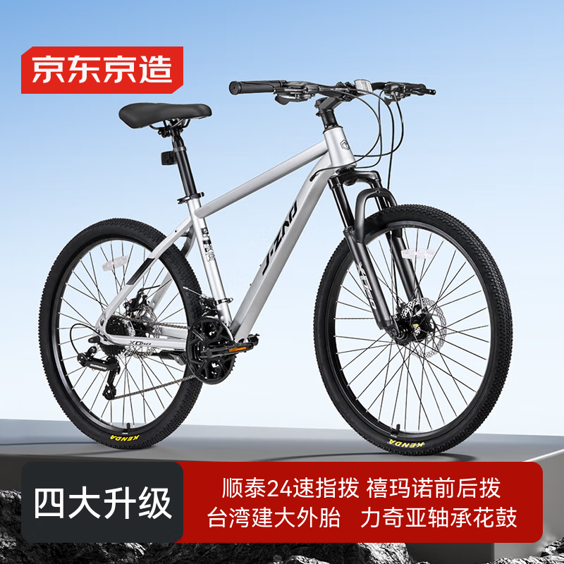 旗舰店京东京造 XC150山地自行车24速碟刹成年人学生山地车通勤单车17寸银色