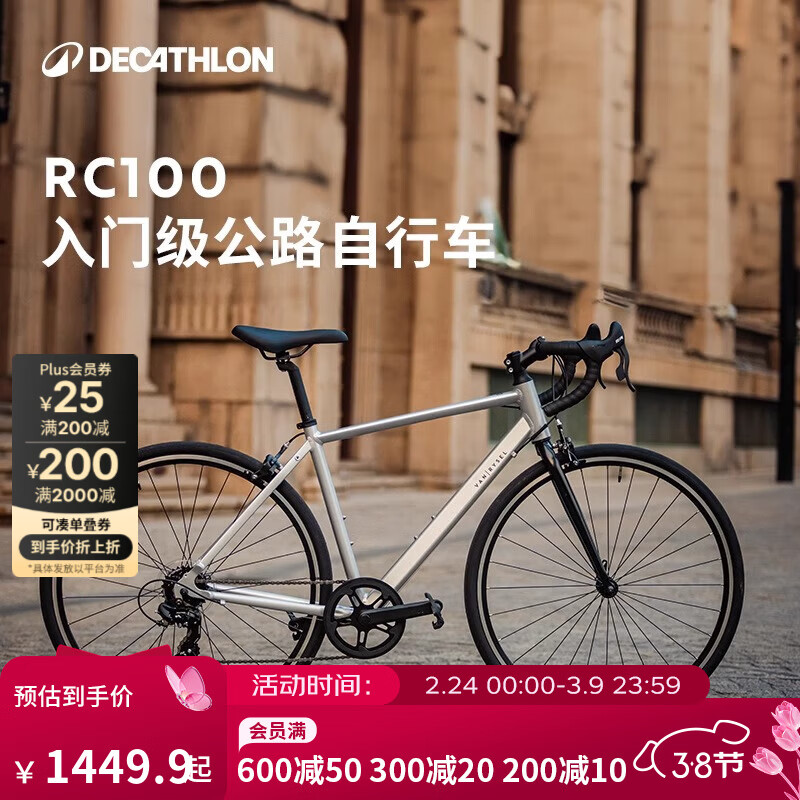 旗舰店迪卡侬RC100升级版公路自行车Van Rysel男女骑行单车 Van Rysel 银色 M码 适合身高175cm~180cm