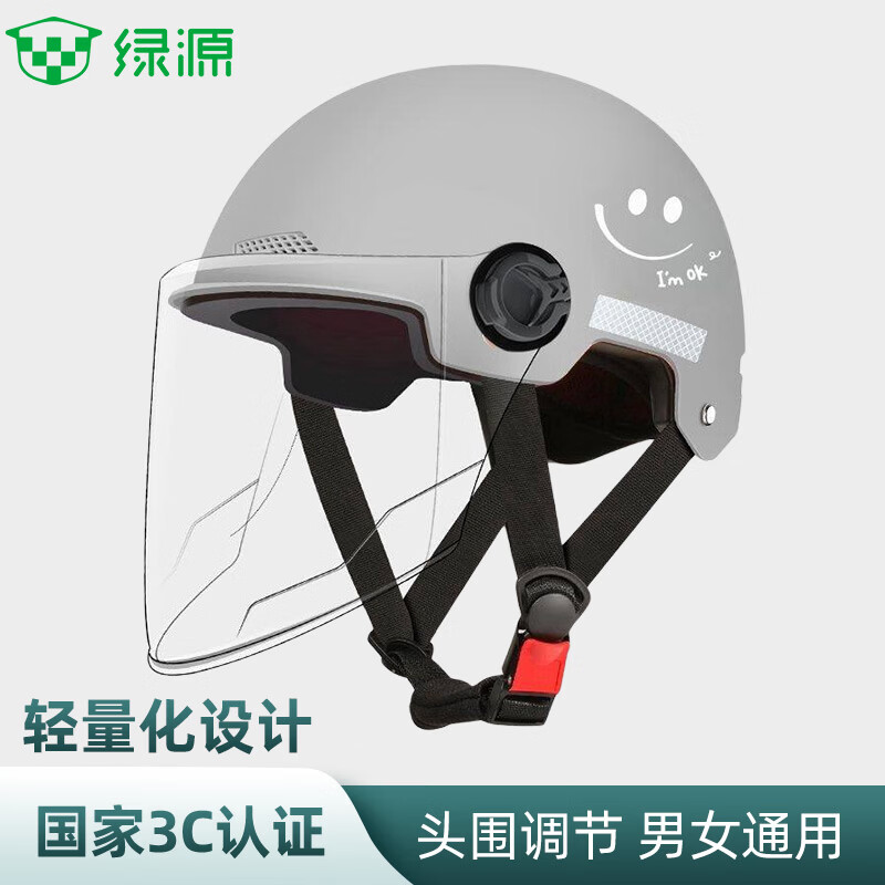 旗舰店绿源头盔电动车成人男女3C认证219笑脸新国标夏季四季通用电瓶车半盔安全帽摩托车 219笑脸灰色-透明短镜