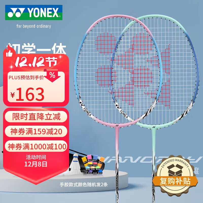 自营YONEX尤尼克斯羽毛球拍对拍专业训练轻量耐打2支套装NR6000i附球+手胶