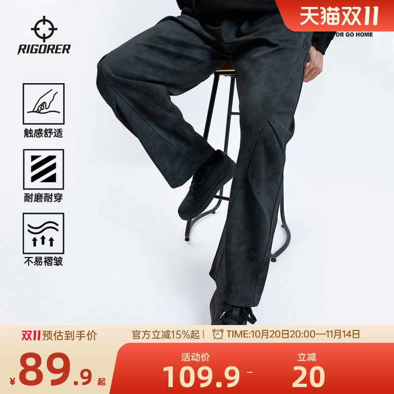旗舰店准者运动裤简约做旧宽松阔腿垂坠感针织卫裤男休闲弯刀直筒长裤