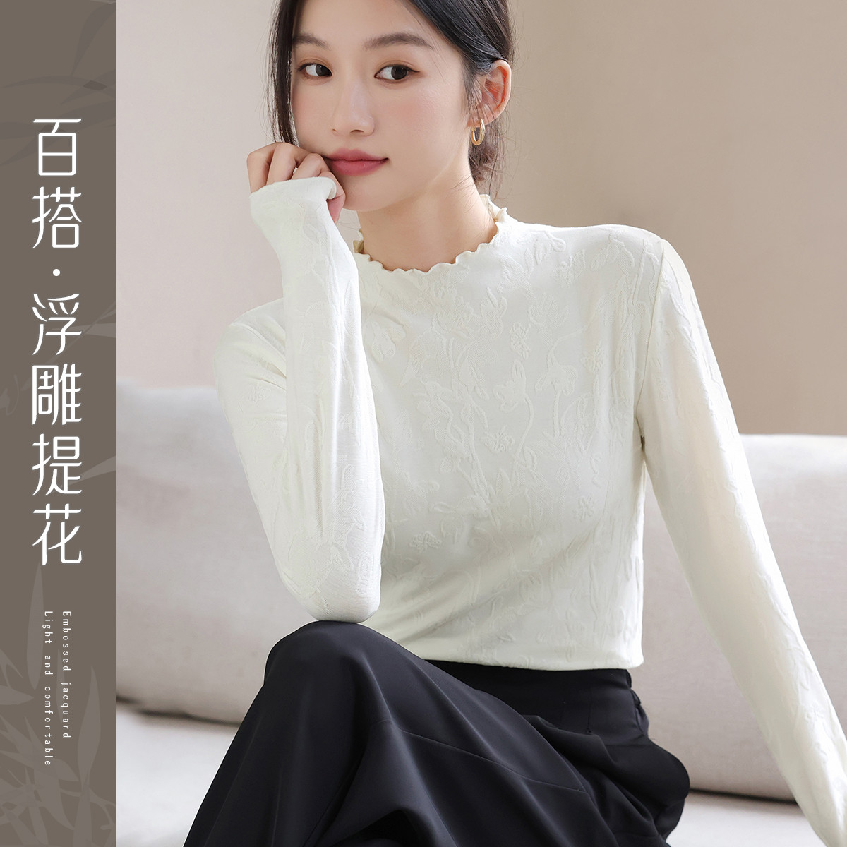【优雅浮雕提花】春秋冬内搭女士打底衫高级感百搭上衣女式可外穿
