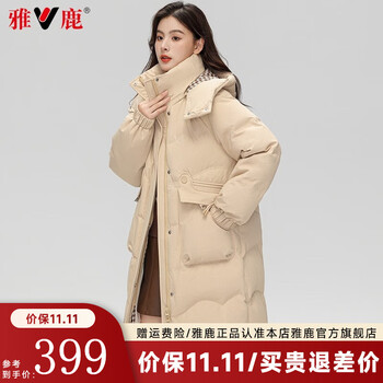 百亿补贴雅鹿羽绒服女中长款2024冬季新款时尚韩版连帽女士加厚保暖宽松外套 卡其色 165