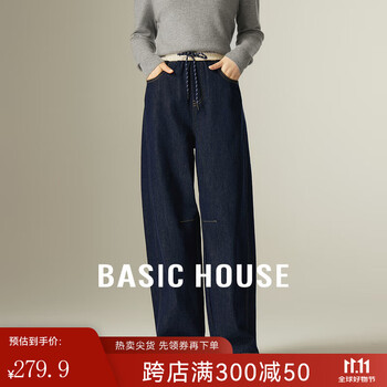 旗舰店班尼路S&K系列裤子女装秋冬季新款潮流时尚长裤宽松小个子休闲风直筒裤 黑#纯色 L