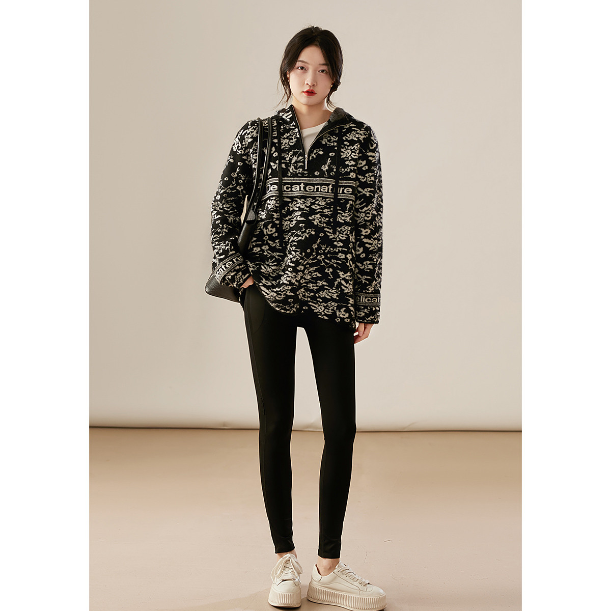 笑涵阁 【售完不补】高克重羊绒双面提花套头拉链连帽卫衣针织衫夏季