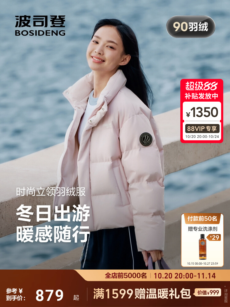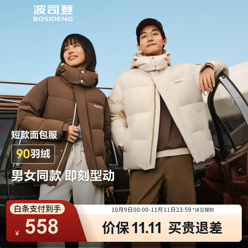 旗舰店波司登2025新款女短款立领羽绒服时尚运动加厚情侣面包服保暖
