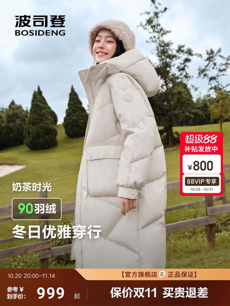 波司登 【爆款推荐】冬季连帽都市气质大长款到脚踝加厚H型羽绒服女