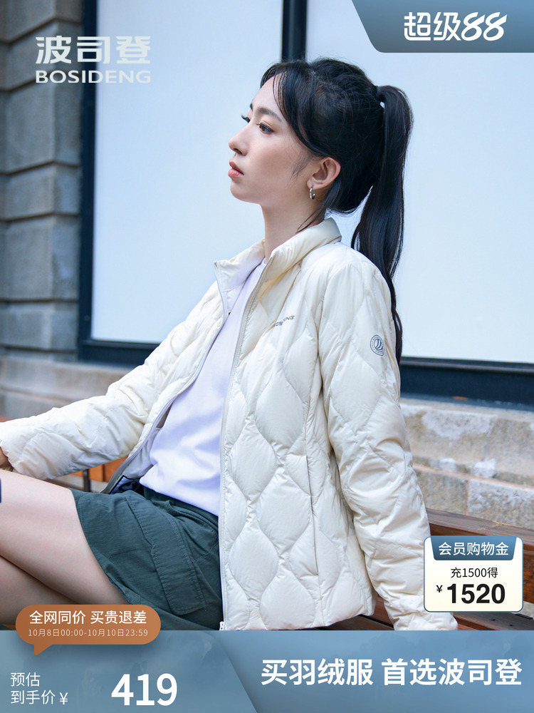 旗舰店波司登明星同款新款轻薄羽绒服女短款错格立领保暖外套90鹅绒外套