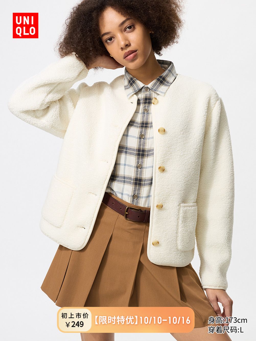 优衣库女装罗纹亨利领T恤/长袖修身短款内搭打底479591 02 浅灰色 M /160/84A