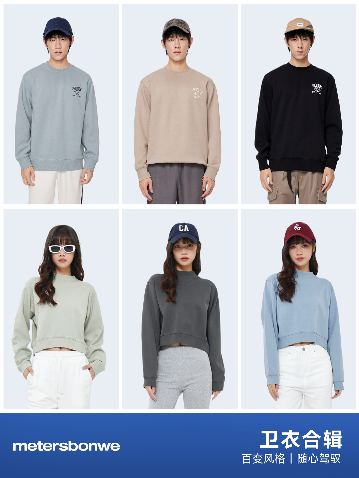 【卫衣合辑】森马男女春秋款男生黑色圆领针织情侣卫衣