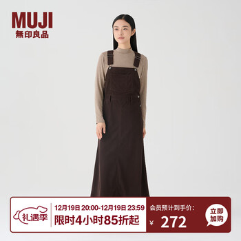 旗舰店无印良品(MUJI)女式 灯芯绒 背带裙 中长款连衣裙 BE10CC3A 深棕色 M
