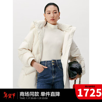 旗舰店太平鸟【商场同款】太平鸟女装2023年冬季毛领一手长羽绒服A1ACD4550 米白 XL