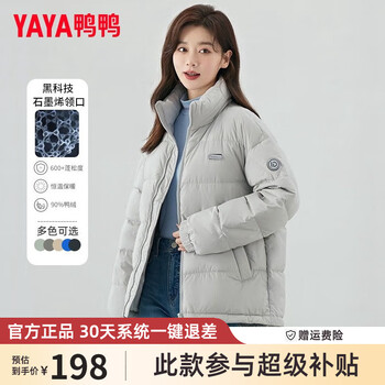 旗舰店鸭鸭(YAYA)明星同款羽绒服女短款立领情侣男女同款冬装新款面包服小个子外套 浅灰色-女 S【建议90-110斤】