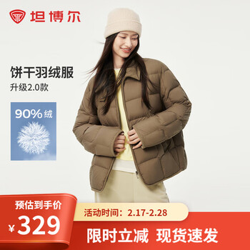 旗舰店坦博尔【品质鹅绒】羽绒服女宽松鹅绒服外套女短款TW236362 黑糖咖啡 S 160/84A