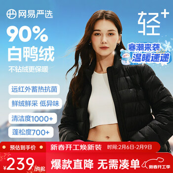 旗舰店网易严选【轻+7.0】24秋冬90白鸭绒羽绒服防风保暖抗静电石墨烯抗菌连帽 立领款-石墨黑 M
