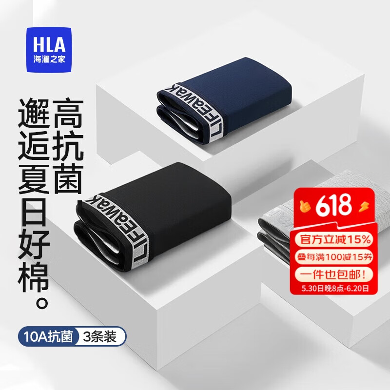 自营海澜之家【轻奢度假】内裤男士25新品纯棉95棉10A抗菌平角四角短裤衩3条装