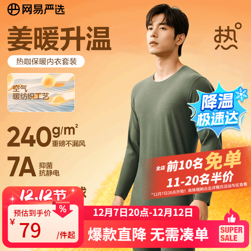 旗舰店网易严选新品暖姜保暖内衣240g重磅7A抗菌柔软透气不闷汗秋衣秋裤 A款240g升级-抹茶绿-男款 L