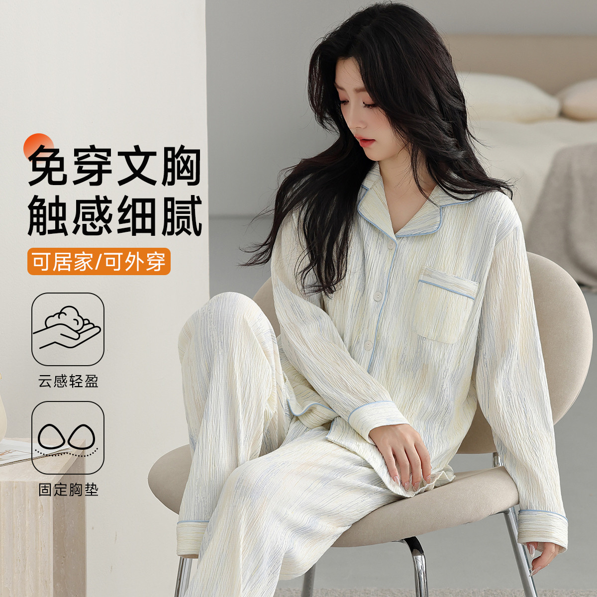 【新疆棉免穿文胸】女士家居服套装睡衣春秋冬长袖长裤高级感外穿