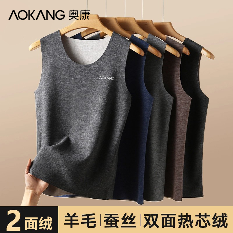 旗舰店奥康羊毛蚕丝保暖内衣男绒德无痕发热加绒加厚内穿打底背心冬上衣