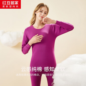旗舰店红豆(Hodo) 秋冬内衣秋衣秋裤纯棉套装纯色低圆领打底衫裤 女款深雅粉 165/90