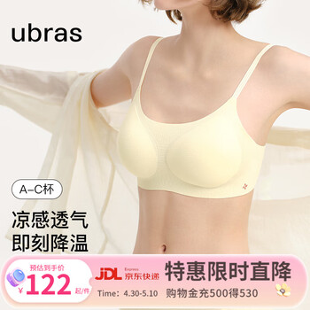 旗舰店ubras情人节礼物陈都灵同款无尺码小凉风凉感吊带细肩带内衣女文胸罩 【文胸】奶油布丁色 均码 背勾款-(100-130斤)