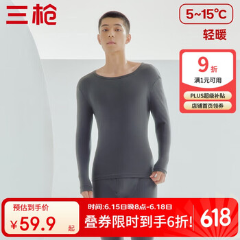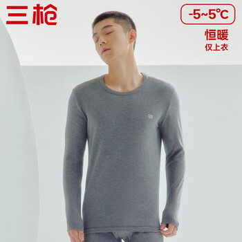 自营三枪【100%舒肤厚棉】秋衣男纯棉圆领男士保暖内衣上衣打底衫