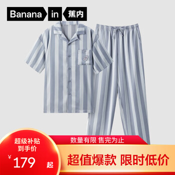 旗舰店蕉内【周冬雨同款】520H睡衣男女士夏季冰丝凉感短袖情侣家居服送女友 【短袖长裤男】蒙灰条纹—啤酒 M