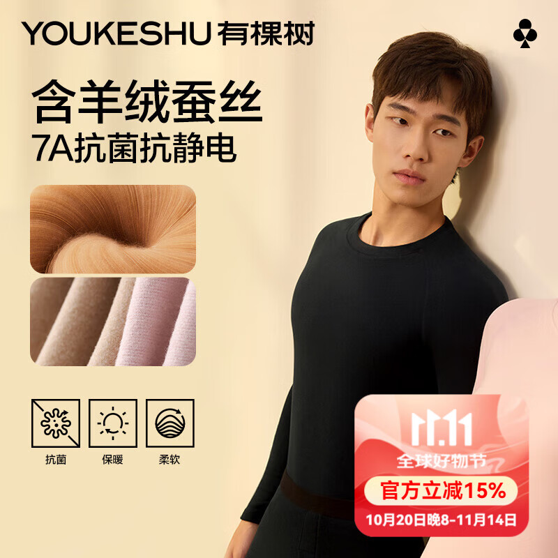 旗舰店有棵树保暖内衣男7A级抗菌秋冬季秋衣秋裤女羊毛蚕丝男士保暖套装女 【男款】经典黑 XL