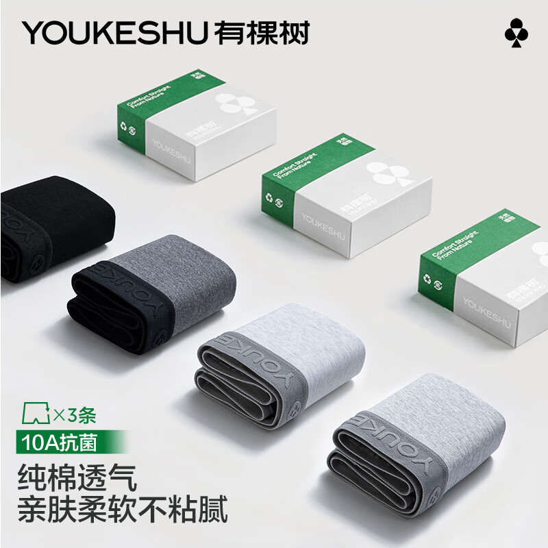 自营有棵树男士内裤男纯棉10A抑菌档清爽透气宽松舒适亲肤四角平角裤衩内裤
