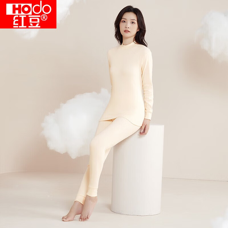 旗舰店红豆(Hodo)内衣秋衣秋裤纯棉新品薄款套装中半高领基础打底保暖内衣 女款浅玉 M 165/90