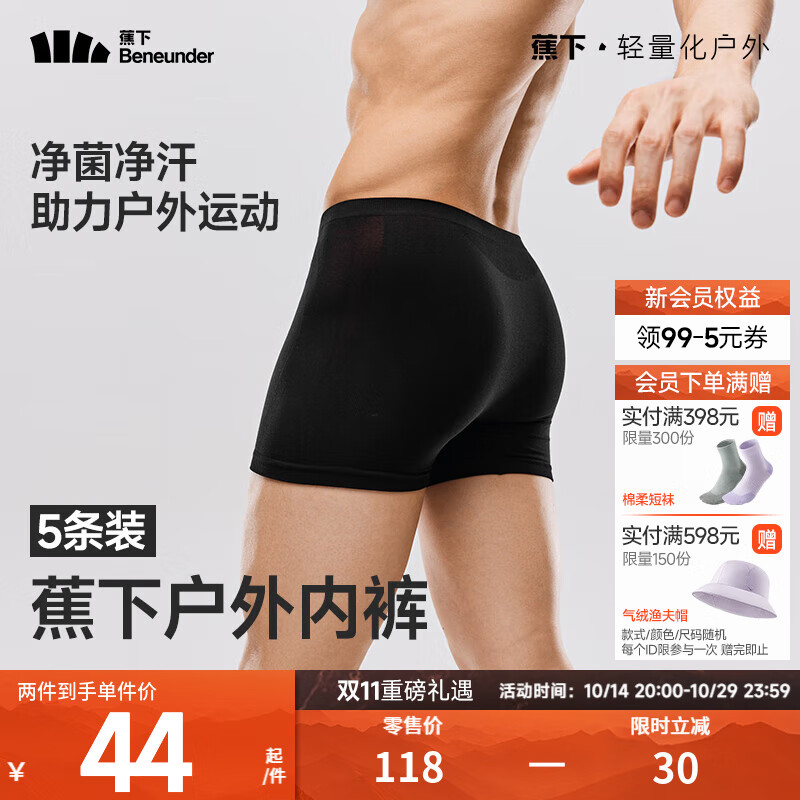旗舰店蕉下内裤免洗无菌出差暑期旅游男士5条装户外出行可次抛内裤学生 漫暮黑 F(均码)