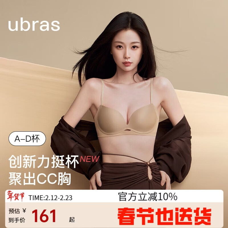 自营ubras新品力挺杯粉底液收副乳小胸聚拢显大无痕文胸罩女隐形肤百搭M