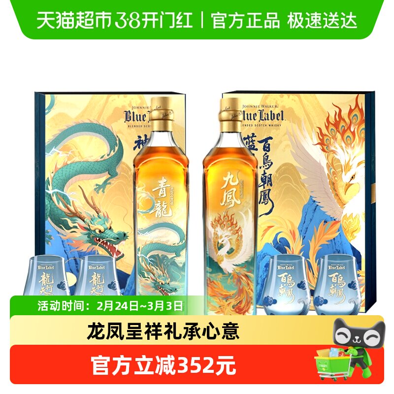 【节日礼盒】尊尼获加山海经系列蓝牌威士忌龙凤合鸣礼盒500ml*2