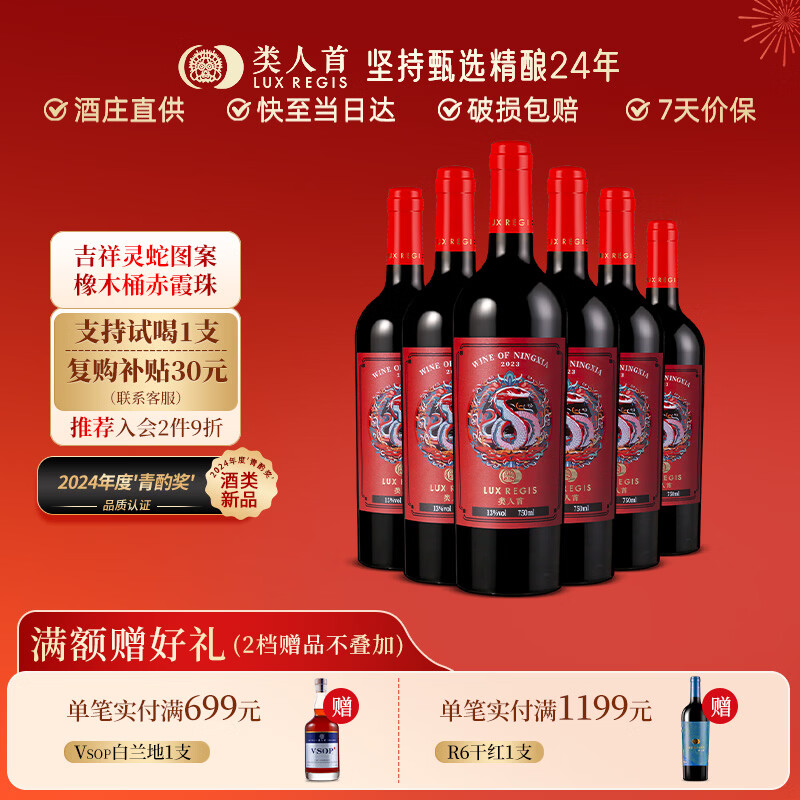 自营类人首红酒 宁夏贺兰山东麓灵蛇橡木桶生肖干红葡萄酒750ml*6送礼整箱
