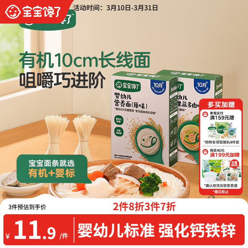 自营宝宝馋了婴儿面条原味160g 婴幼儿辅食营养面宝宝面条儿童线面无添加盐