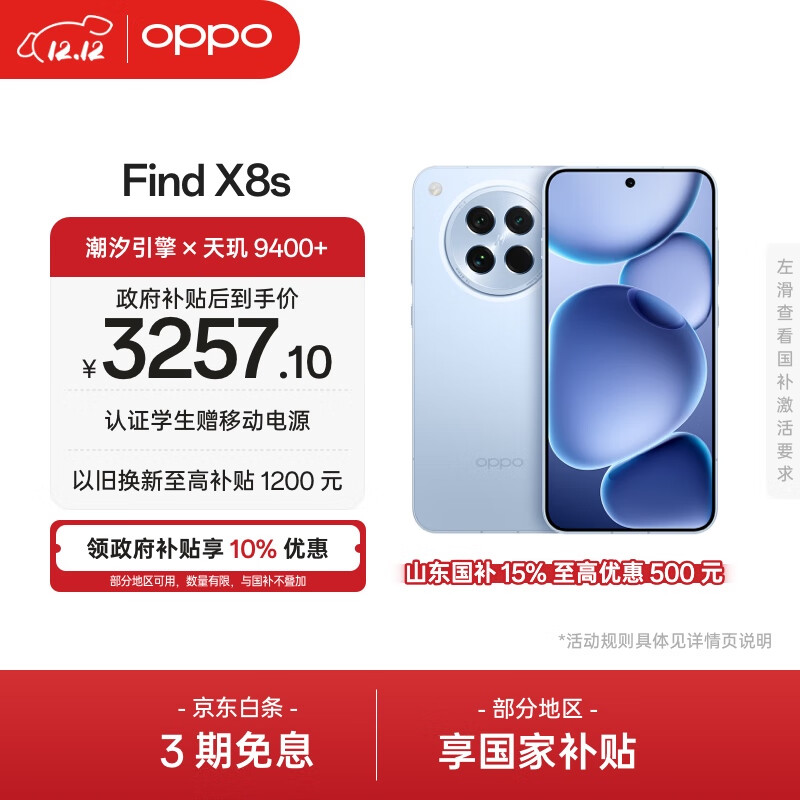 自营OPPO Find X8s 12GB+256GB 海岛蓝 极窄四等边 天玑9400+ 哈苏人像 超长续航电池 AI 5G手机 国家补贴