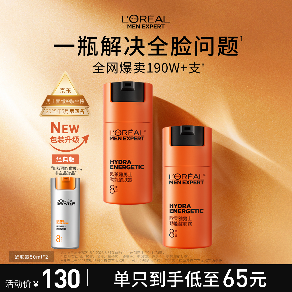 自营欧莱雅男士劲能醒肤露50ml*2套装紧致抗皱补水保湿秋冬乳液护肤品礼物