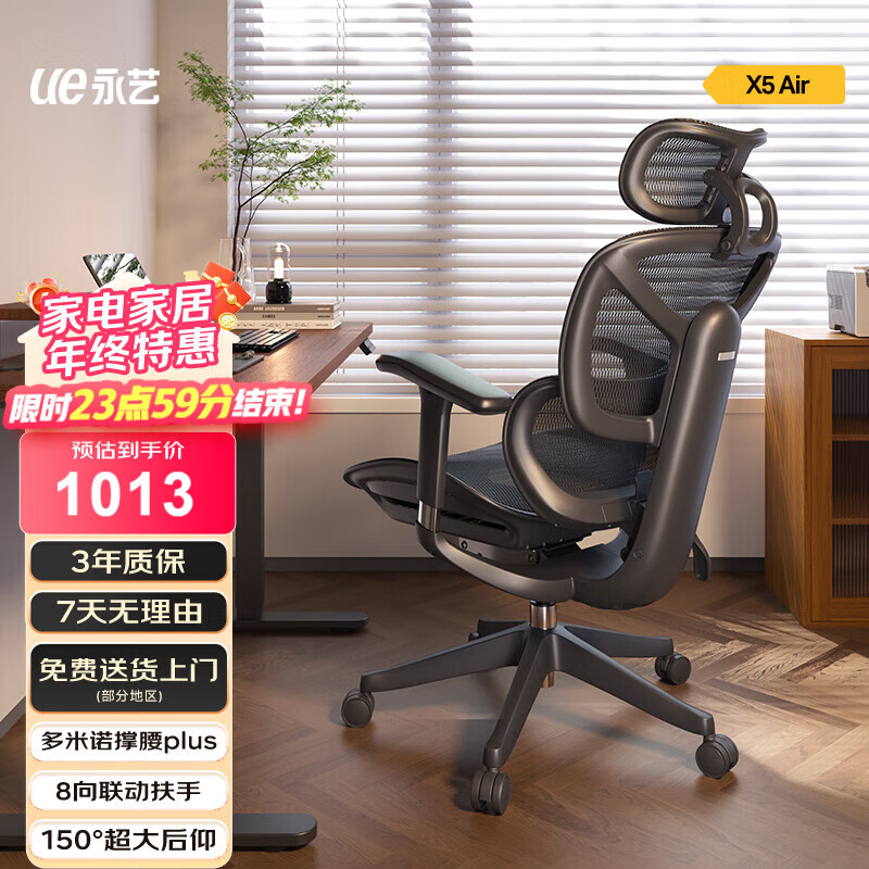 旗舰店永艺X5 AIR撑腰椅人体工学椅电脑椅子护腰可躺人工力学座椅电竞办公椅 X5 AIR 黑色 4D扶手