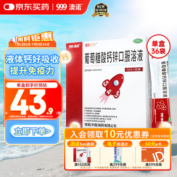 自营澳诺 葡萄糖酸钙锌口服溶液 5ml*36袋 葡萄糖酸钙 锌 液体钙 钙铁锌口服液 儿童补钙锌1-3-17岁 葡萄糖酸锌 改善厌食 促进发育 儿童钙 补锌