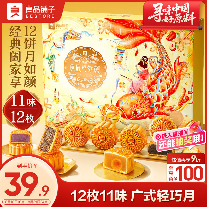 自营良品铺子良辰月如颜420g经典月饼礼盒传统糕点点心中秋送礼企业团购