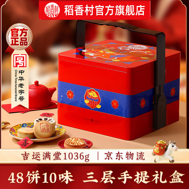 旗舰店稻香村糕点礼盒年货礼盒京八件送礼长辈食品礼盒北京传统糕点心团购顺丰 【三层铁盒装】吉运满堂1036g