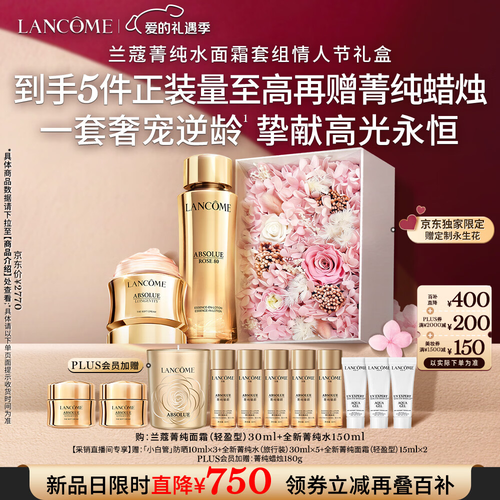 自营兰蔻菁纯水150ml菁纯面霜30ml轻盈版套装抗皱紧致护肤新年礼物化妆品