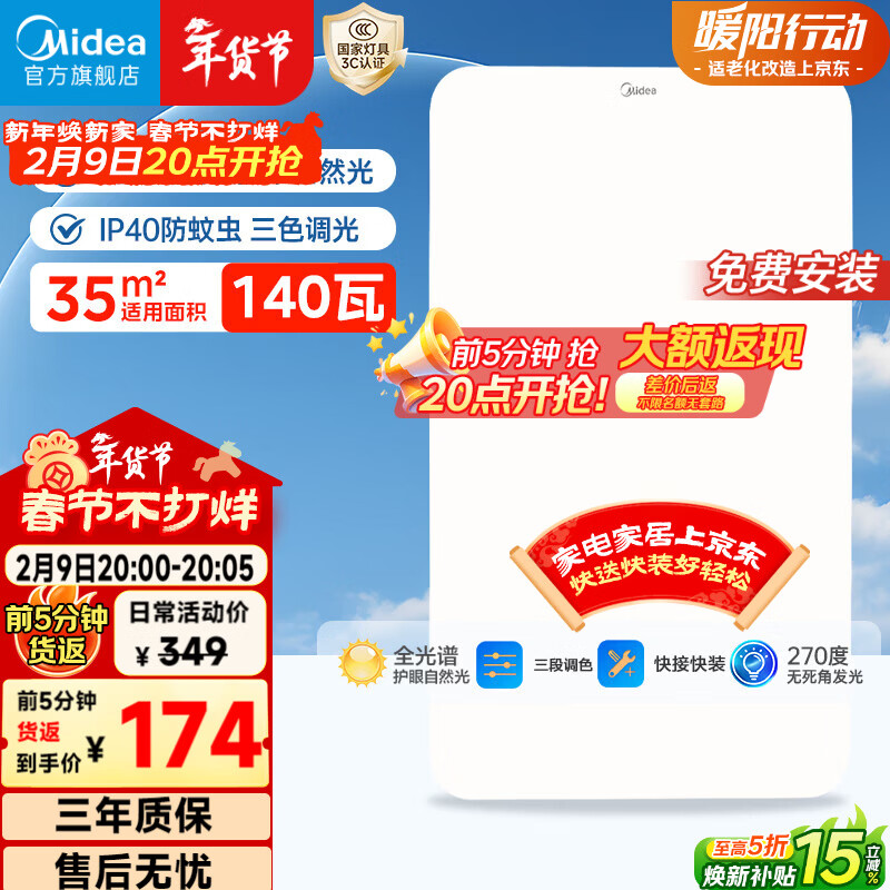 自营美的(Midea)客厅灯led吸顶灯卧室灯餐厅灯饰三防大灯140W明轩A1