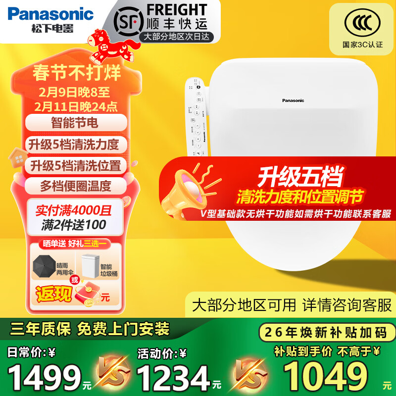 旗舰店松下智能马桶盖通用前十名家用清洗加热烘干PQTK25马桶圈5210+/RN30 5210升级款pro一盖三代用5档清洗